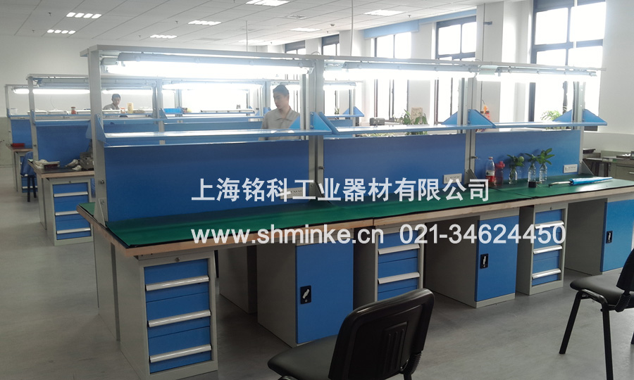 該批工作臺左右各配一臺工具柜,方便工具的存放收納;